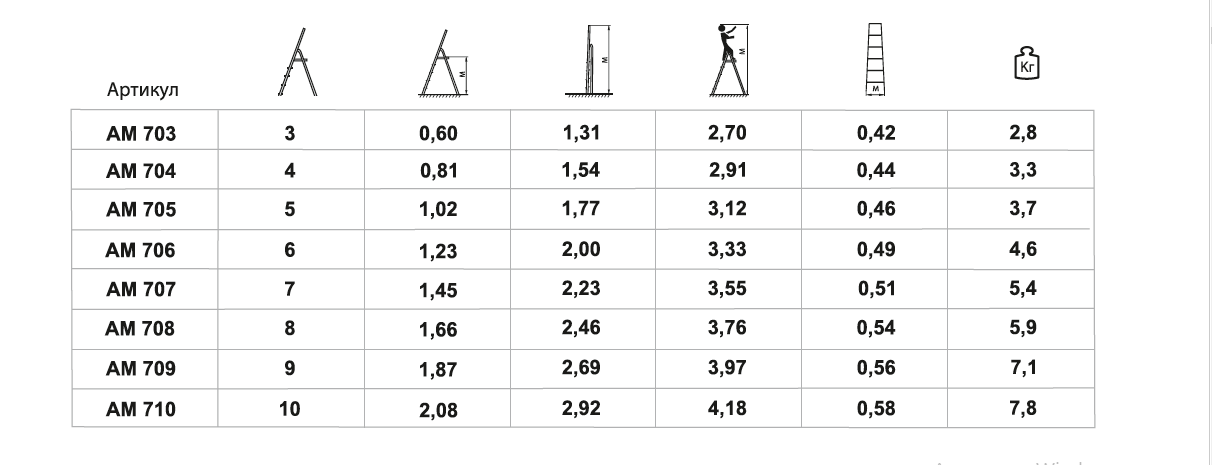 Стремянка серии АМ представляет собой свободностоящую переносную лестницу, сужающуюся к верху, имеющую сторону подъема (переднюю ногу), опорную сторону (заднюю ногу), рабочую площадку и раскладывающуюся для выполнения определённой задачи. Дуга безопасности конструктивно выполнена совместно со стороной подъема.