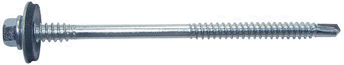 Стальной оцинкованный саморез с шестигранной головкой и сверловидным наконечником, укомплектованные шайбой с резиновой прокладкой