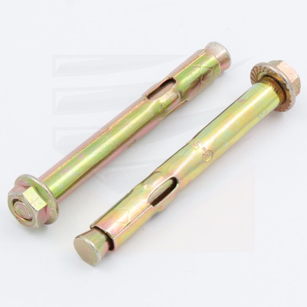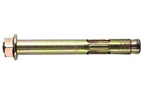 Анкерный болт с гайкой представляет из себя конструкцию состоящую из стальной гильзы (втулки), конусной шпильки с метрической резьбой и гайки-прокладки. В распорной части гильзы имеются надрезы, для упрощения процесса распирания при монтаже. При закручивании гайки конусная шпилька втягивается в металлическую втулку и распирает её. Расширение распорной части при монтаже обеспечивает надежное долговременное соединение. На конусной части у основания расположены насечки для более надежного крепления анкерного болта в материале.