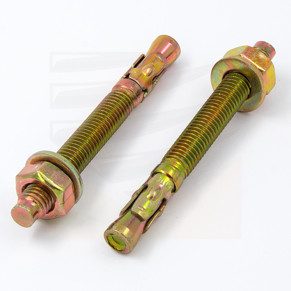Анкер-клин WAM состоит из шпильки (стержня) с метрической резьбой, распорной втулки на ее конце и шестигранной гайки с шайбой. При закручивании гайки, шпилька втягивается в распорную втулку, расклинивает ее и прочно закрепляет анкер, прижимая втулку к стенкам просверленного отверстия.