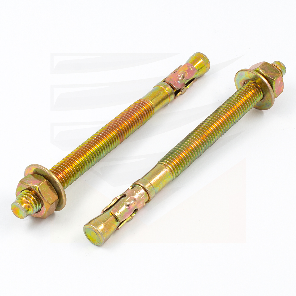 Анкер-клин WAM состоит из шпильки (стержня) с метрической резьбой, распорной втулки на ее конце и шестигранной гайки с шайбой. При закручивании гайки, шпилька втягивается в распорную втулку, расклинивает ее и прочно закрепляет анкер, прижимая втулку к стенкам просверленного отверстия.