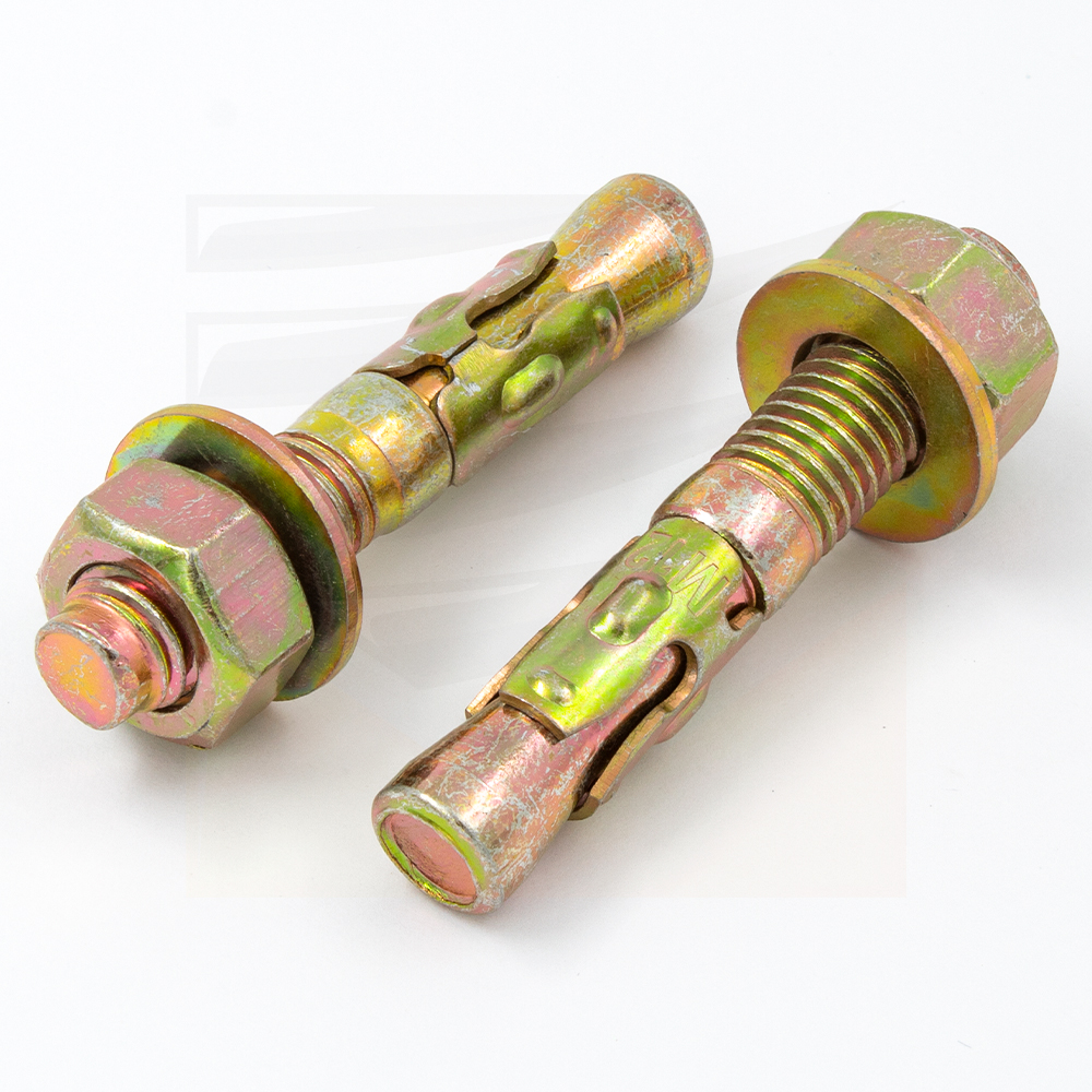 Анкер-клин WAM состоит из шпильки (стержня) с метрической резьбой, распорной втулки на ее конце и шестигранной гайки с шайбой. При закручивании гайки, шпилька втягивается в распорную втулку, расклинивает ее и прочно закрепляет анкер, прижимая втулку к стенкам просверленного отверстия.