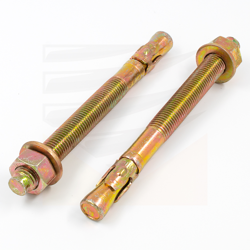 Анкер-клин WAM состоит из шпильки (стержня) с метрической резьбой, распорной втулки на ее конце и шестигранной гайки с шайбой. При закручивании гайки, шпилька втягивается в распорную втулку, расклинивает ее и прочно закрепляет анкер, прижимая втулку к стенкам просверленного отверстия.