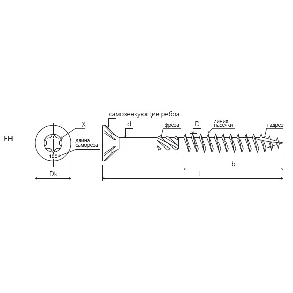 Самонарезающий конец с особой геометрией с эффектом «буравчика», обеспечивает быстрое и легкое первоначальное вкручивание.