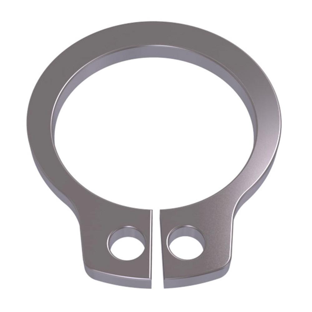 Наружное стопорное кольцо выполнено из высокопрочной стали, используется для фиксации деталей на валу. Имеются отверстия для разведения в стороны при помощи съемника.