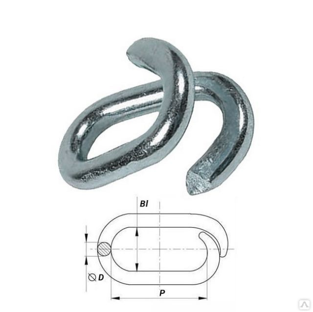 Строительно-монтажные и такелажные работы, бытовые и хозяйственные нужды. Применяется для присоединения, наращивания, ремонта звеньев цепи. обеспечивает быстрое и неразъемное соединение любых видов цепей. Не предназначен для подъема грузов. Размер определяется поперечным сечением прутка.После присоединения рекомендуется заварить соединитель цепи при помощи электросварки.