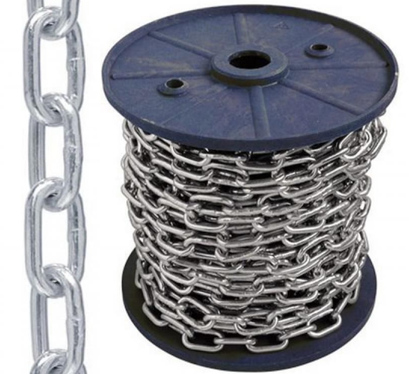 Цепь оцинкованная из углеродистой стали, состоит из коротких овальных звеньев и имеет среднюю степень свободы.