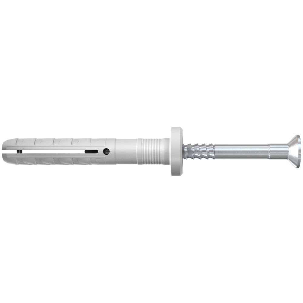 Гвоздевой дюбель fischer N-F с цилиндрическим бортиком включает дюбель из высококачественного нейлона и оцинкованный винтовой гвоздь. Они вместе уже подготовлены для быстрого монтажа. Дюбель-гвоздь устанавливается сквозным монтажом через закрепляемый компонент, что экономит время монтажа. При забивании гвоздя пластиковый дюбель распирается в отверстии и надежно закрепляется в строительном материале. Гвоздевой дюбель N-F с цилиндрическим бортиком хорошо подходит для крепления металлических конструкций ко всем строительным материалам во внутренних помещениях.