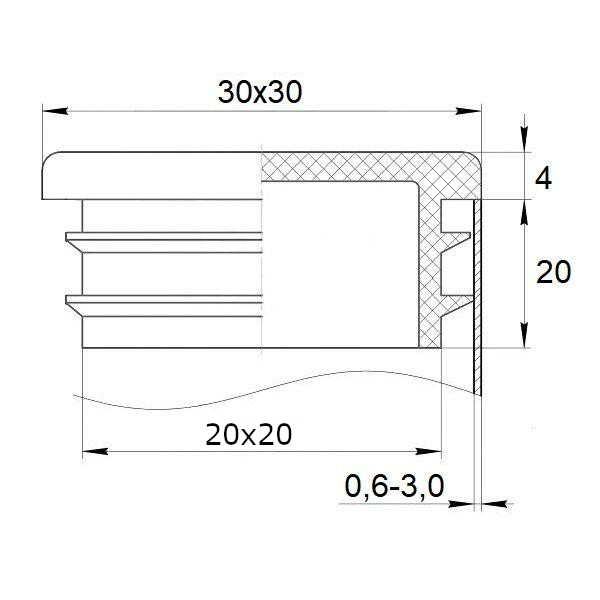 Заглушка квадратная 30х30 пластиковая практичная черная RAL 9017. Обеспечивает надежную защиту трубы от попадания влаги и грязи. Благодаря наличию внутренних ребер жесткости заглушка надежности фиксируется внутри трубы.