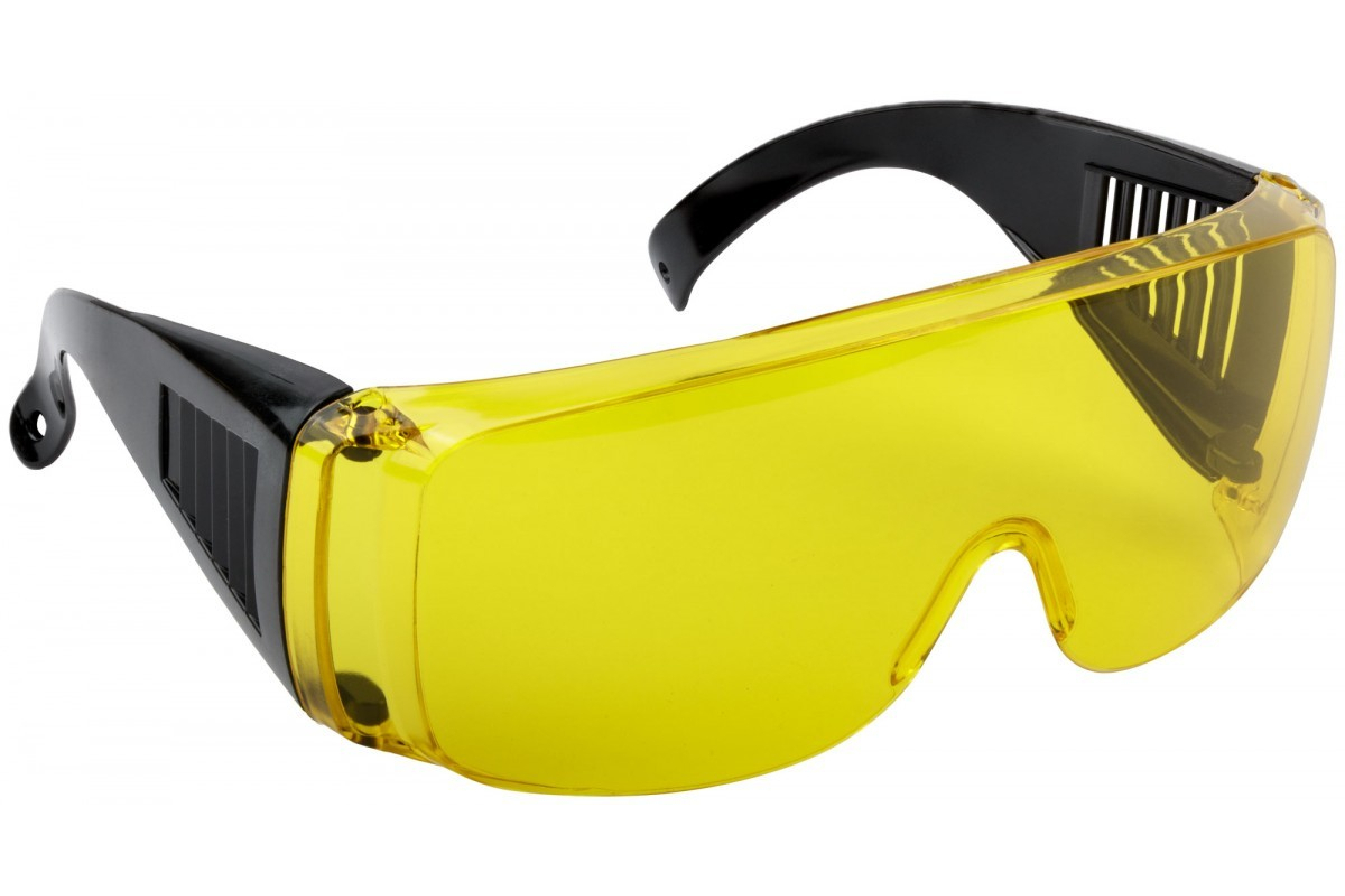 Желтые защитные очки FIT оберегают глаза от пыли, окалины, стружки, краски во время проведения различных работ.