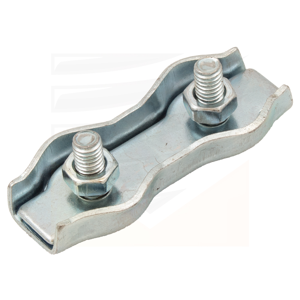 Зажим для тросов изготовлен из оцинкованной стали, предназначен для соединения тросов и изготовления перель на концах троса.