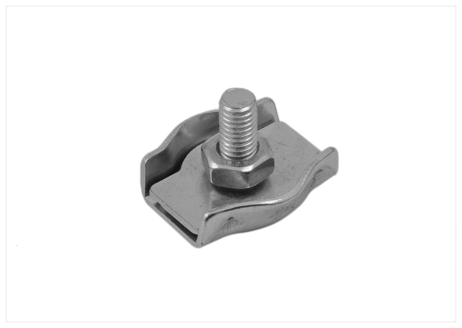 Зажим для тросов изготовлен из оцинкованной стали, предназначен для соединения тросов и изготовления перель на концах троса.