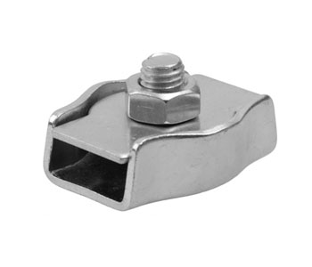 Зажим для тросов изготовлен из оцинкованной стали, предназначен для соединения тросов и изготовления перель на концах троса.