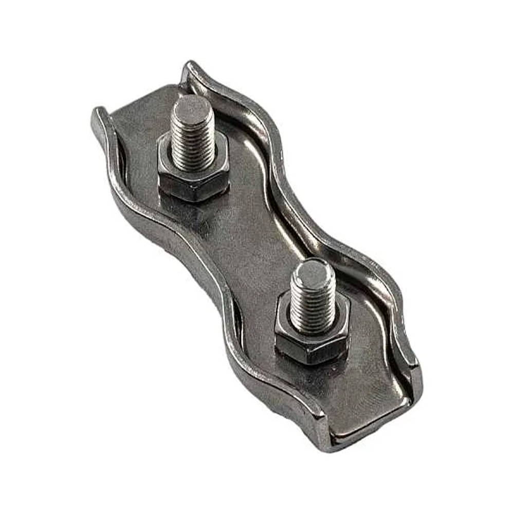 Зажим двойной нержавеющий предназначен для создания петель стальных тросов, канатов, для удлинения и соединения тросов и канатов.