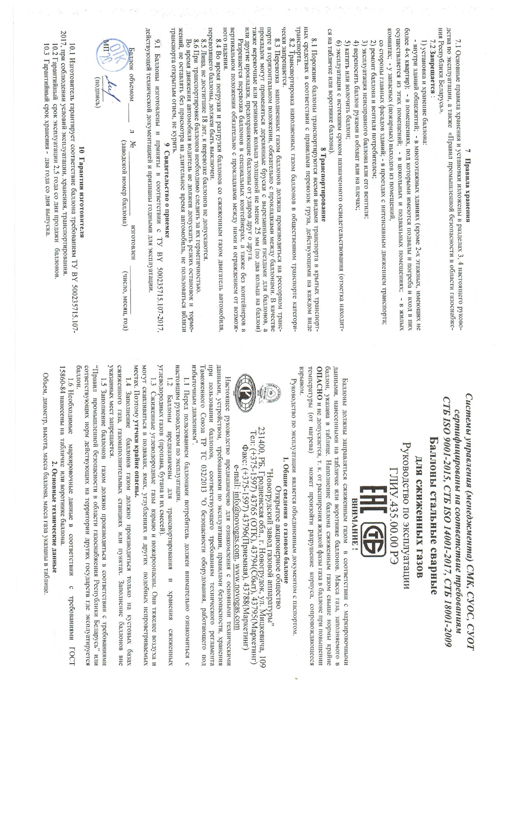 Изготовлен из стали, выдерживающей внешние и внутренние нагрузки, не нарушая первоначальных свойств содержимого баллона. Следует помнить, что при увеличении температуры давление возрастает, поэтому при хранении и транспортировке не допускайте резкого повышения температуры. В комплекте поставляется вентиль ВБ-2 НЗГА. Баллон изготавливается в соответствии с ТУ.