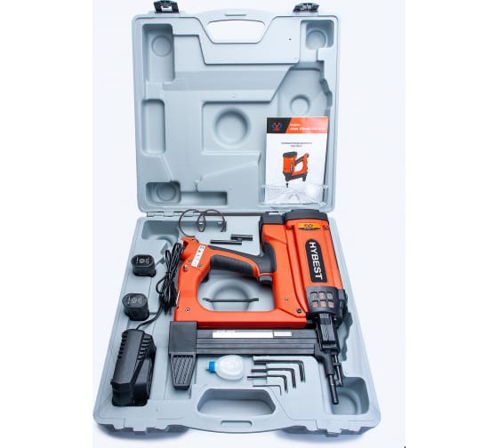 Особенности: Нет прижимной скобы - компактный ствол является защитным прижимным механизмом, что делает этот инструмент удобным для всех видов работ; - Не требует смазки, благодаря специальной смеси сжиженного газа и лубрикантов; Широкий диапазон рабочей температуры от -15° до +50° С; Большая мощность при забивании гвоздя - позволяет надежно прибивать профнастил как несъемную опалубку к стальным конструкционным балкам большого сечения. Прост в эксплуатации и обслуживании - не требует предварительных навыков. В комплекте 2 аккумулятора Li-Ion - позволяют забить до 8000 гвоздей без подзарядки от электросети. Подвес на ремень с возможностью разворота на 180 градусов - удобно работать как левой так и правой рукой. Индикатор аккумулятора на рукоятке инструмента заранее сообщит о необходимости подзарядки и неисправности Ударопрочный пластиковый кейс - защитит инструмент во время транспортировки.