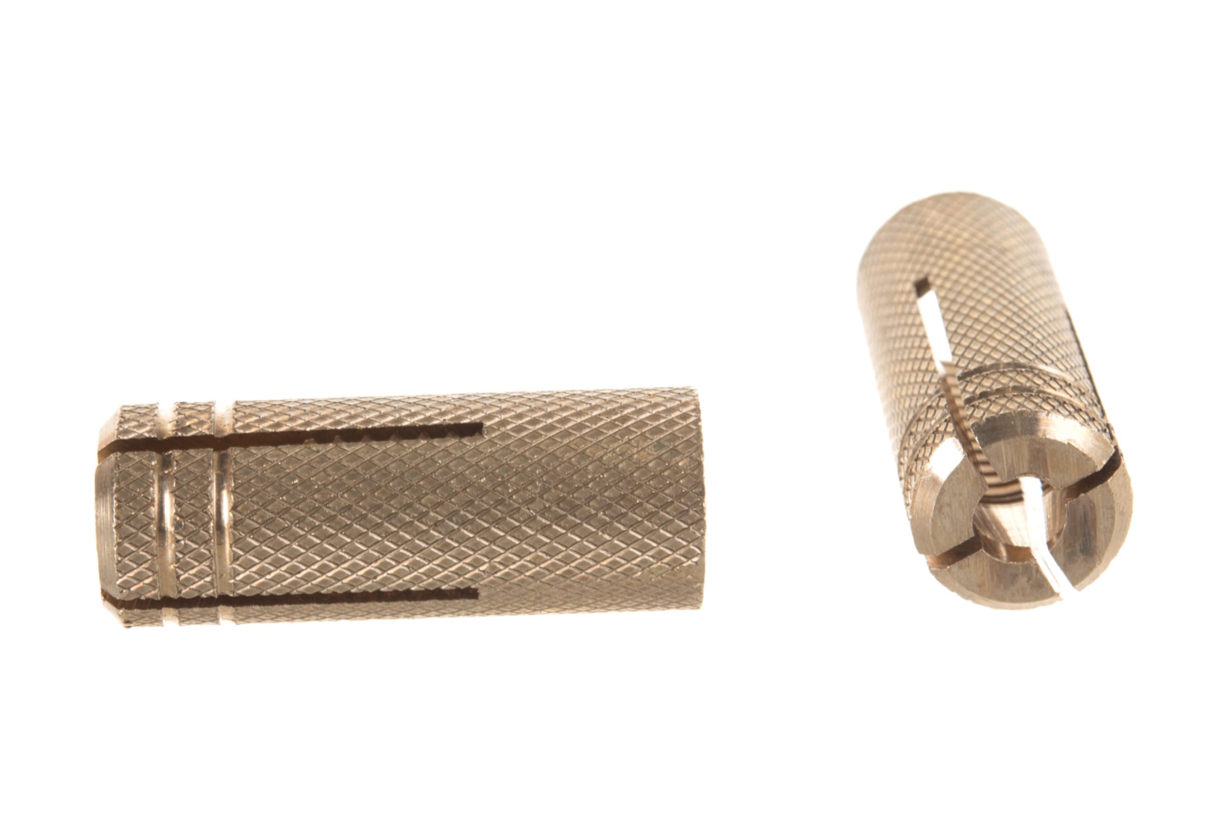 Забивной анкер представляет из себя латунную цангу, которая в силу мягкости металла изготовления, не имеет расклинивающего элемента и состоит из одной гильзы. Распирание происходит за счет вкручиваемого элемента. Гильза до половины рассечена на 4 части и имеет насечки для предотвращения проворачивания в бетоне. Латунная цанга дороже стальной, но благодаря материалу изготовления она прочнее крепиться в материале и может применяться в рыхлом материале, например кирпиче. Используется для крепления тяжелых конструкций и оборудования в стены и перекрытия из полнотелых материалов (бетон, натуральный камень, кирпич).