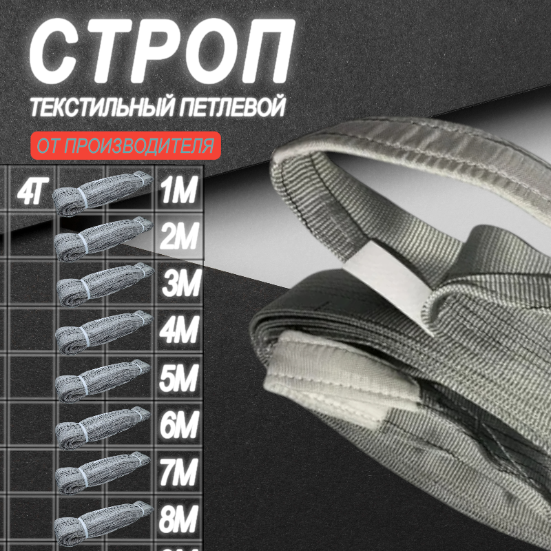 Выгодная цена на стропы текстильные петлевые грузоподъемностью 4 тонны.