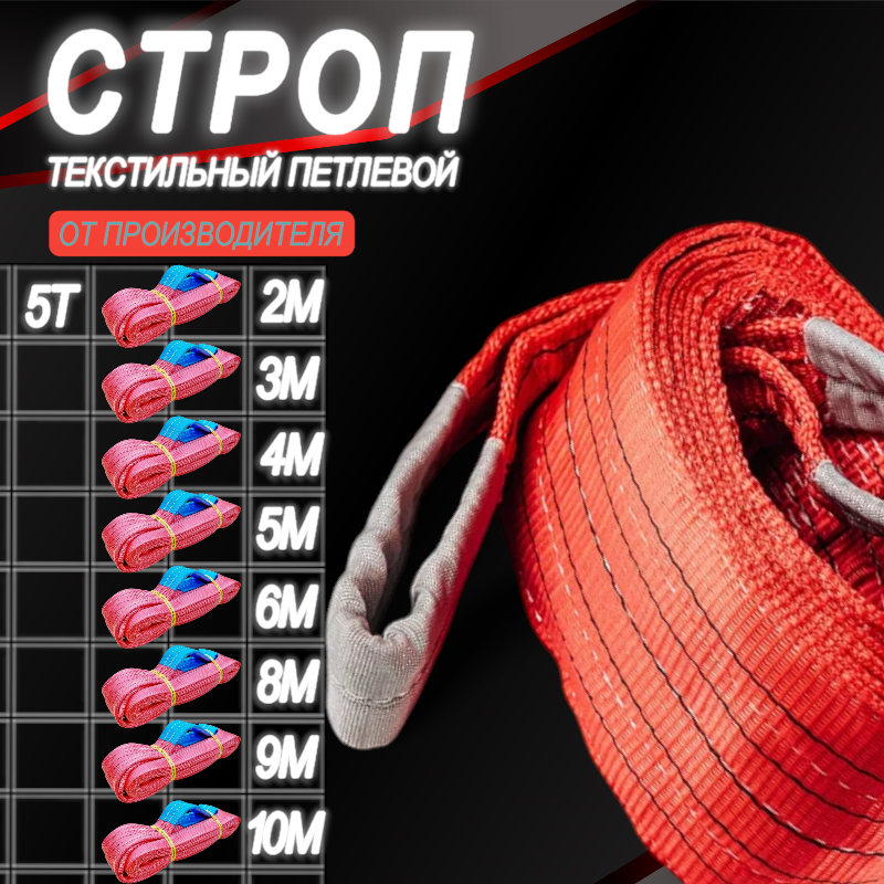 Выгодная цена на стропы текстильные петлевые грузоподъемностью 5 тонн.